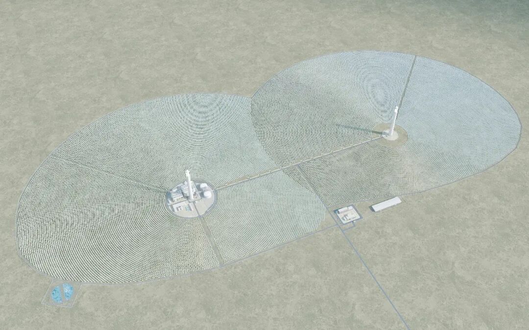 世界首個(gè)“雙塔一機(jī)”風(fēng)光熱儲(chǔ)一體化項(xiàng)目,安裝于三峽恒基能脈(酒泉)新能源發(fā)電有限公司
