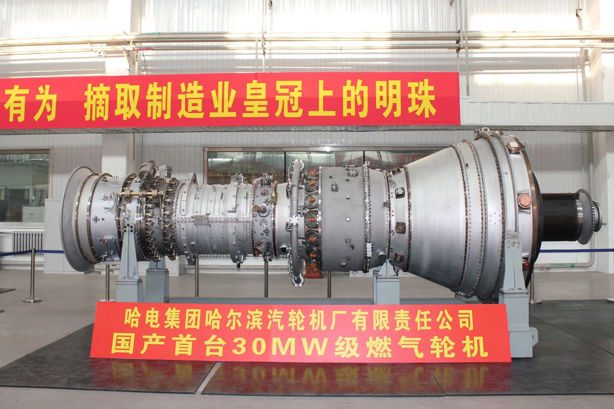 汽輪機(jī)公司生產(chǎn)的國產(chǎn)首臺30兆瓦級燃?xì)廨啓C(jī),安裝于中石油西氣東輸三線煙墩站。