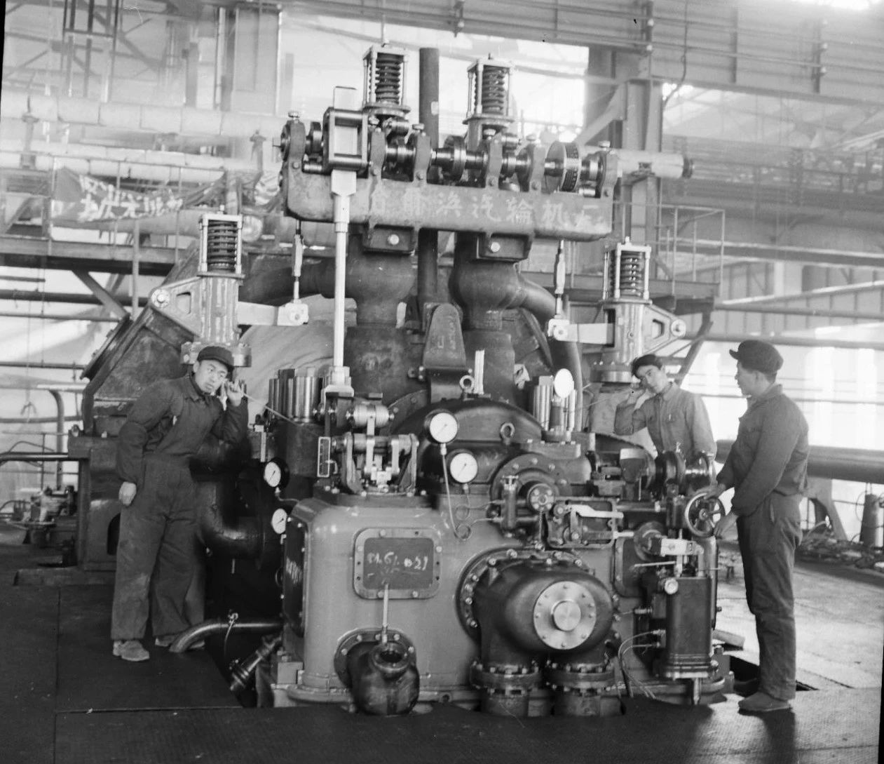1958年,哈電集團(tuán)汽輪機(jī)公司生產(chǎn)制造的國內(nèi)首臺(tái)2.5萬千瓦汽輪機(jī)試車畫面