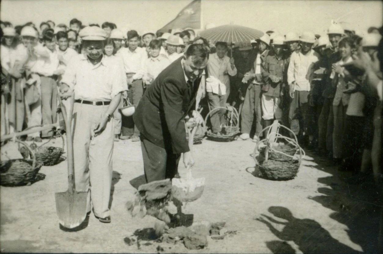 1956年,第一機(jī)械工業(yè)基建司司長與蘇聯(lián)專家為工廠奠基