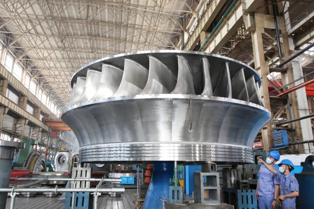為打造兩河口精品轉輪,哈電集團電機公司在總結白鶴灘水輪機成功經驗的基礎上,針對兩河口項目具體情況進行技術創(chuàng)新,研制出了適應兩河口電站水頭高、水頭變幅更大的長短葉片轉輪,其最優(yōu)效率95%以上,不僅加權效率高,低水頭超出力能力強,而且實現(xiàn)了全水頭、全負荷安全穩(wěn)定高效運行,是我國乃至世界水輪機技術的又一重要突破。其中,1至4號機轉輪更是實現(xiàn)了“零配重”。