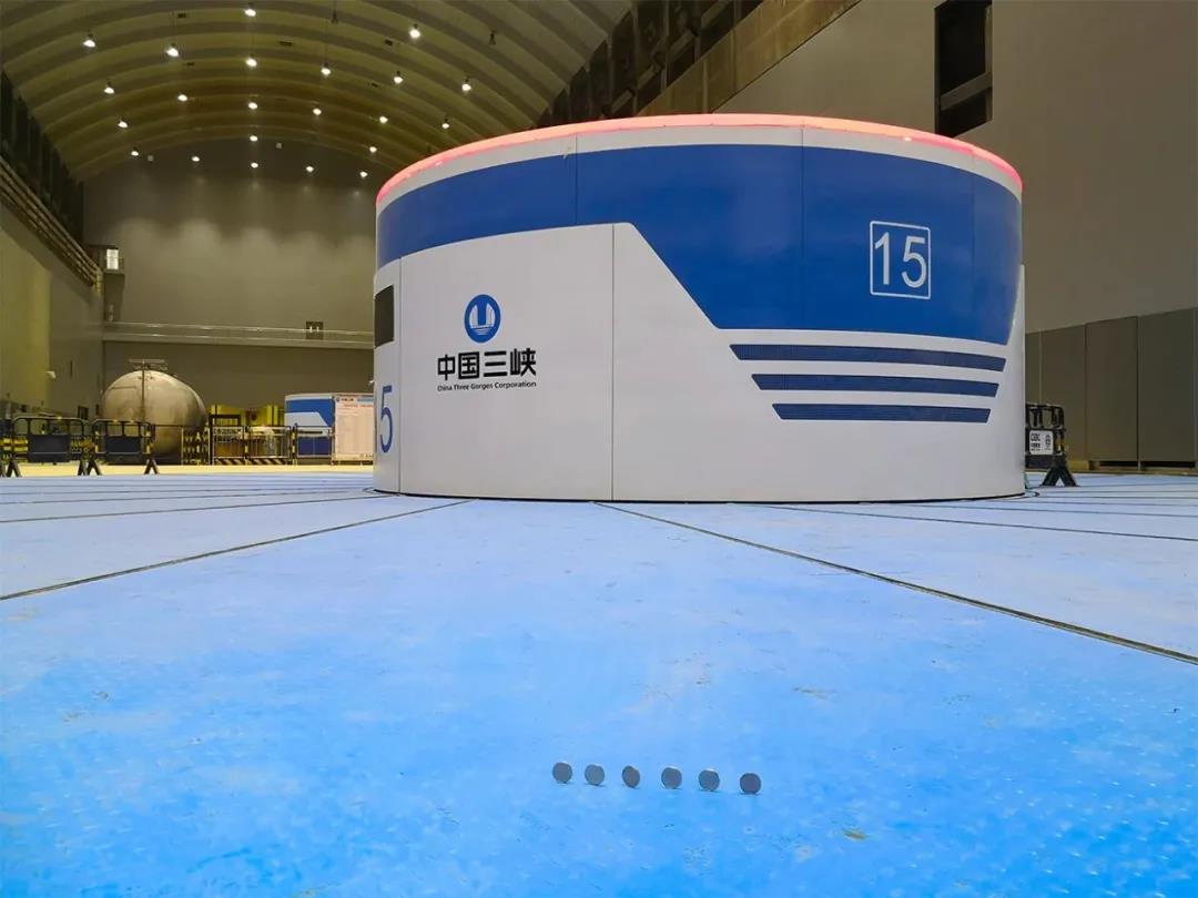 白鶴灘右岸15號機組高54米,總重量7600噸,額定轉(zhuǎn)速每分鐘107.1轉(zhuǎn),想讓如此“龐然大物”高速運行,對機組本身的穩(wěn)定性要求非常高。試運行期間,為測試并直觀地展示機組穩(wěn)定性,工作人員將6枚硬幣豎立在運行中的15號機組上,硬幣竟紋絲不動! 哈電集團深入貫徹落實習近平總書記給白鶴灘水電站首批機組投產(chǎn)發(fā)電的賀信精神,所屬企業(yè)電機公司與中國能建葛洲壩機電公司密切配合,積極推進白鶴灘右岸電站后續(xù)機組的制造、安裝、調(diào)試等各項工作,僅在首批2臺機組發(fā)電后19天內(nèi),就實現(xiàn)了承制的右岸電站8臺機組中的第二臺精品機組安全準點投產(chǎn)發(fā)電,再創(chuàng)百萬千瓦機組投產(chǎn)發(fā)電新紀錄,充分展現(xiàn)了哈電智造、哈電速度與哈電實力。