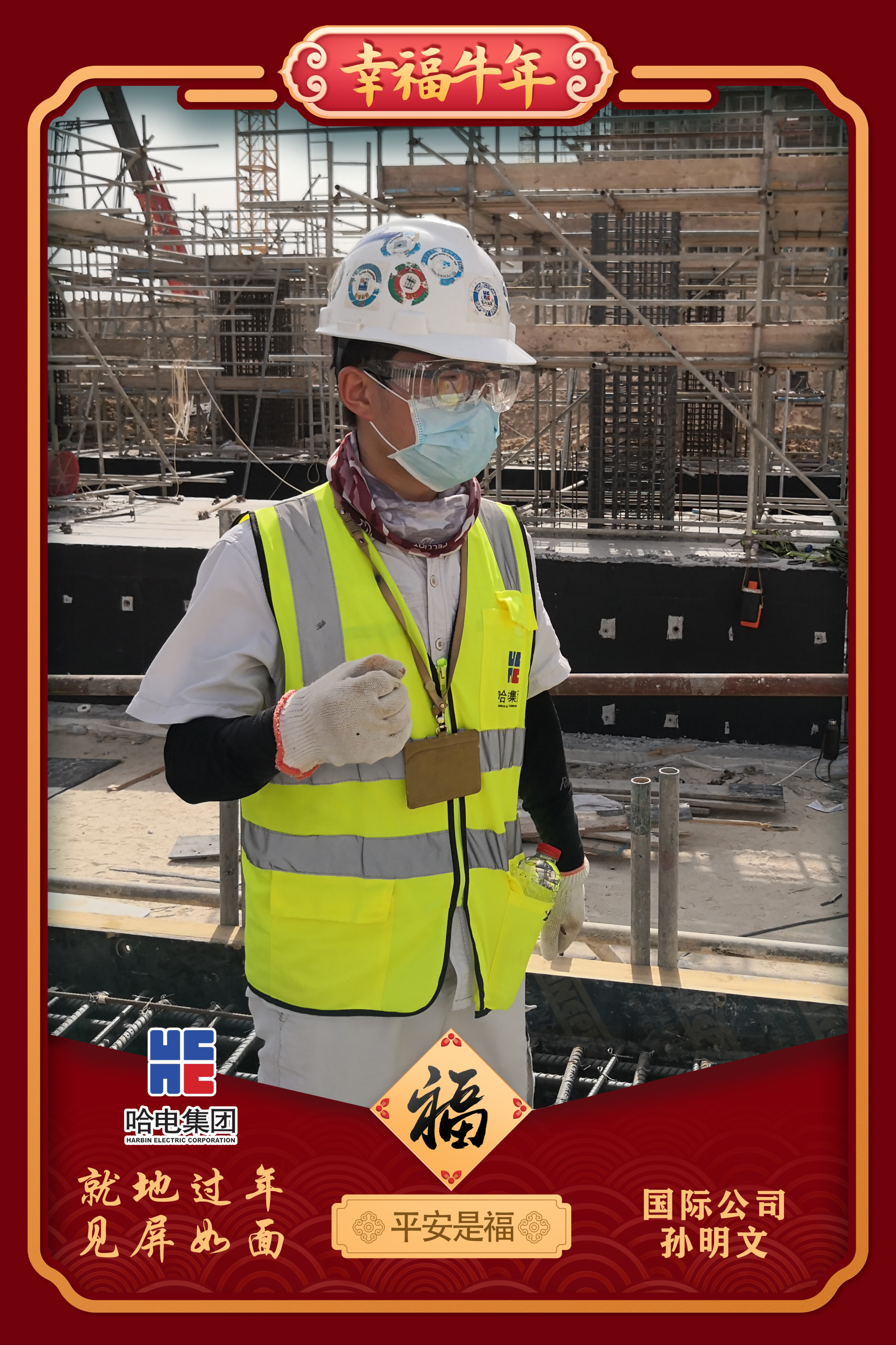 我叫孫明文,來自黑龍江省佳木斯市,是哈電國際火電第六事業(yè)部的一名職工,也是迪拜哈斯彥項(xiàng)目的一名土建工程師,負(fù)責(zé)項(xiàng)目鋼結(jié)構(gòu)安裝和主廠房土建施工管理工作。自2017年來到現(xiàn)場工作,至今已有3年多時(shí)間,今年將是我在項(xiàng)目現(xiàn)場度過的第4個(gè)春節(jié)。今年過年,我們將繼續(xù)組織好每年的現(xiàn)場春節(jié)聯(lián)歡會,與領(lǐng)導(dǎo)同事一起包餃子、貼春聯(lián),同樣是年味十足。