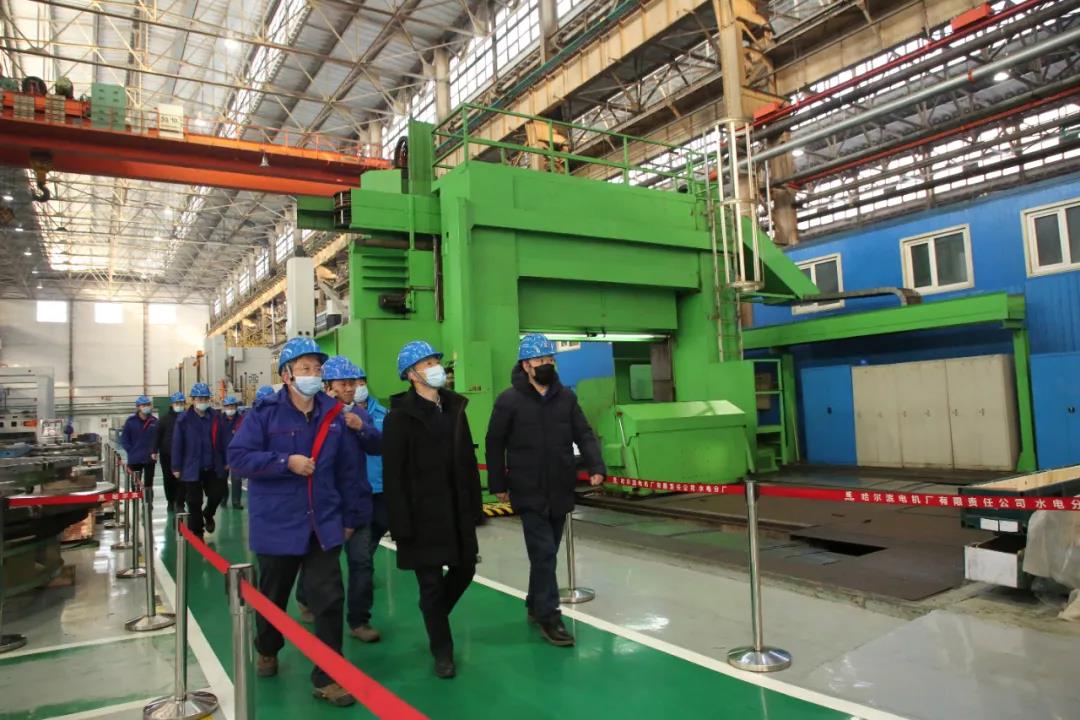 1月9日上午,哈電集團(tuán)黨委書記、董事長斯?jié)煞驇ш?duì)到電機(jī)公司檢查疫情防控工作。哈電集團(tuán)總經(jīng)理助理張海權(quán)陪同檢查。