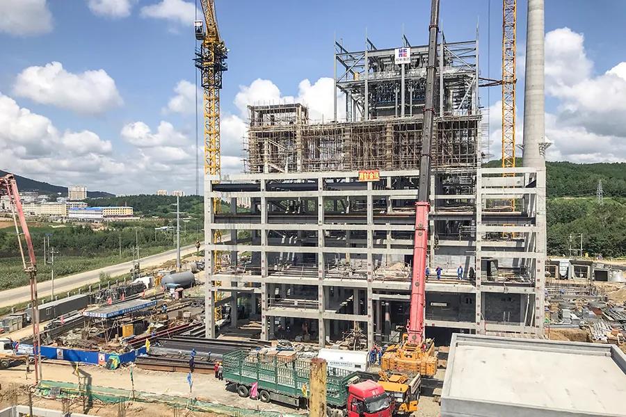 2019年11月18日,鍋爐鋼結(jié)構(gòu)吊裝完成。