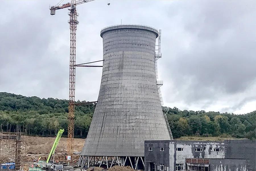 8月24日,自然通風(fēng)冷卻塔結(jié)構(gòu)到頂。