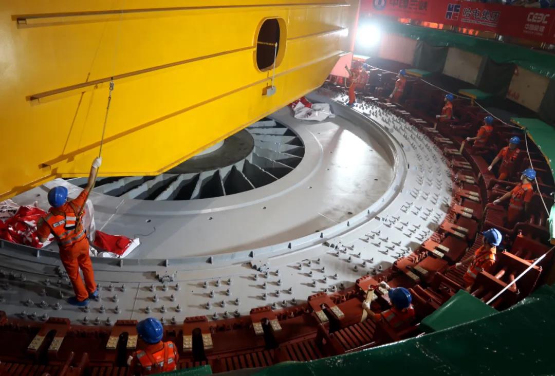 白鶴灘右岸全部8臺百萬千瓦機組的研制,是哈電集團電機公司繼成功研制三峽、溪洛渡、向家壩等巨型水電機組后,又一次憑借一流的技術(shù)實力、超強的制造質(zhì)量、優(yōu)異的服務水平,承擔的又一世界級的超級工程裝備研制任務。經(jīng)過不懈努力,哈電集團陸續(xù)突破了產(chǎn)品研發(fā)、設(shè)計、制造等重大難題,先后成功制造了世界首臺精品座環(huán)、首臺精品導水機構(gòu)、首臺精品長短葉片轉(zhuǎn)輪等重要部件,持續(xù)推動世界水電裝備制造邁入了百萬千瓦機組的“無人區(qū)”。