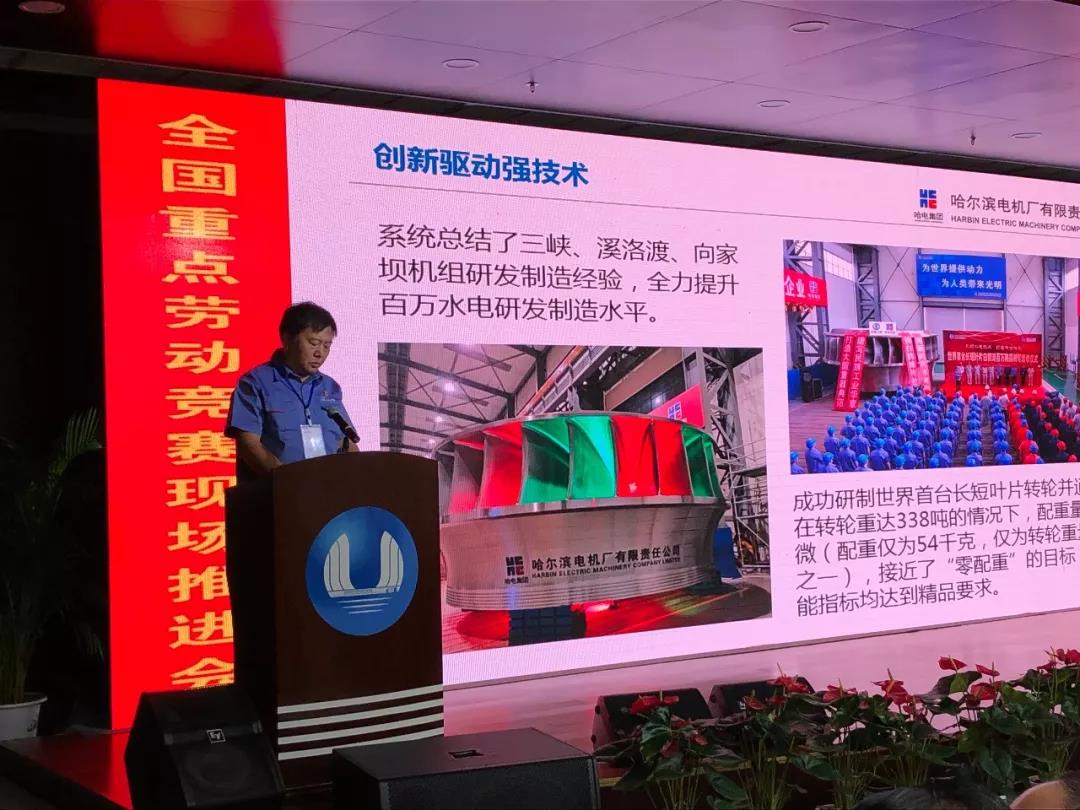 會議組織了金沙江流域水電工程現(xiàn)場觀摩,分別參觀了白鶴灘水電站文體中心的勞動競賽展板展示、左岸834平臺、右岸場地安裝間以及哈電集團電機公司轉輪加工廠等,向各重點競賽組委會頒授了任務書。哈電集團有關人員介紹了參與勞動競賽情況,并在推進會上作了題為“深化金沙江勞動競賽助力白鶴灘精品工程”的典型發(fā)言,其他競賽組委會分別以現(xiàn)場交流和書面交流的方式介紹了經(jīng)驗做法。