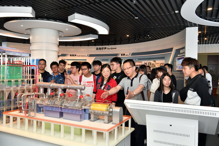 清華大學(xué)師生還參觀了集團(tuán)公司歷史文化展廳和所屬汽輪機(jī)公司和電機(jī)公司。在集團(tuán)歷史文化展廳,師生們對(duì)哈電集團(tuán)的歷史沿革、科技發(fā)展、裝備實(shí)力、歷史貢獻(xiàn)、未來前景有了較為全面的了解。