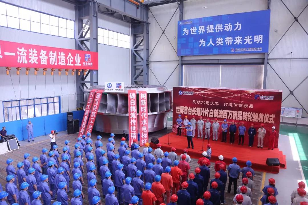 世界首臺(tái)長(zhǎng)短葉片白鶴灘百萬精品轉(zhuǎn)輪驗(yàn)收儀式