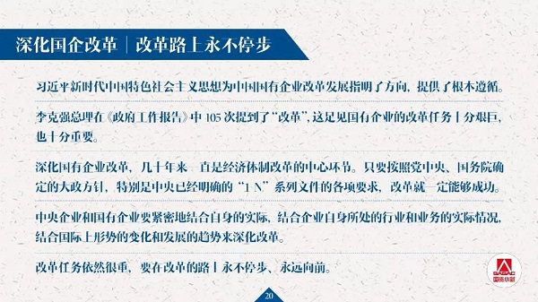 十三屆全國(guó)人大二次會(huì)議新聞中心于3月9日(星期六)15時(shí)在梅地亞中心新聞發(fā)布廳舉行記者會(huì),邀請(qǐng)國(guó)務(wù)院國(guó)資委主任肖亞慶,副主任翁杰明,秘書(shū)長(zhǎng)、新聞發(fā)言人彭華崗就“國(guó)有企業(yè)改革發(fā)展”相關(guān)問(wèn)題回答中外記者提問(wèn)。本次記者會(huì)內(nèi)容豐富、亮點(diǎn)多多,重點(diǎn)內(nèi)容以20頁(yè)P(yáng)PT條分縷析,盡覽國(guó)企國(guó)資改革發(fā)展熱點(diǎn)問(wèn)題答案。