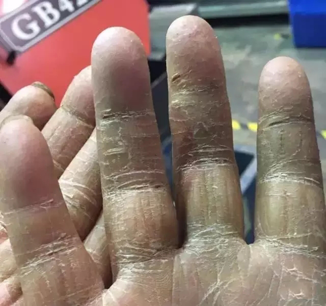 手掌像老樹皮,干枯、開裂;