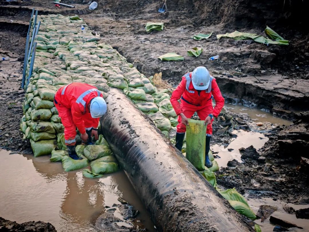 連續(xù)暴雨導(dǎo)致陜京一線管道山西省朔州市應(yīng)縣段突發(fā)多處險(xiǎn)情。國(guó)家管網(wǎng)集團(tuán)北京管道公司青年員工主動(dòng)請(qǐng)戰(zhàn),組建搶險(xiǎn)突擊隊(duì),迅速趕赴搶險(xiǎn)現(xiàn)場(chǎng),爭(zhēng)分奪秒搬運(yùn)沙袋、加固管道,確保管道安全平穩(wěn)運(yùn)行。