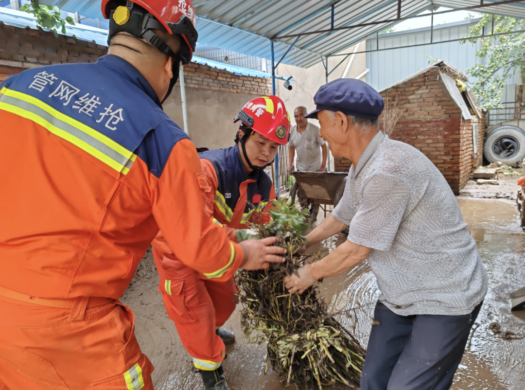 國家管網集團蘭州維搶修中心搶險隊伍抵達后,迅速架設應急照明設備,點亮夜間救援通道;組織力量深入受災區(qū)域,全力幫助群眾清理淤泥,暢通道路。