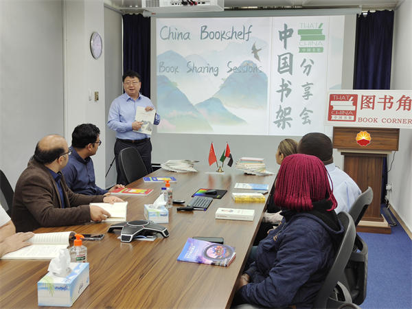 中國(guó)石油在阿聯(lián)酋項(xiàng)目設(shè)立中國(guó)書架,組織中外員工開(kāi)展文化交流。