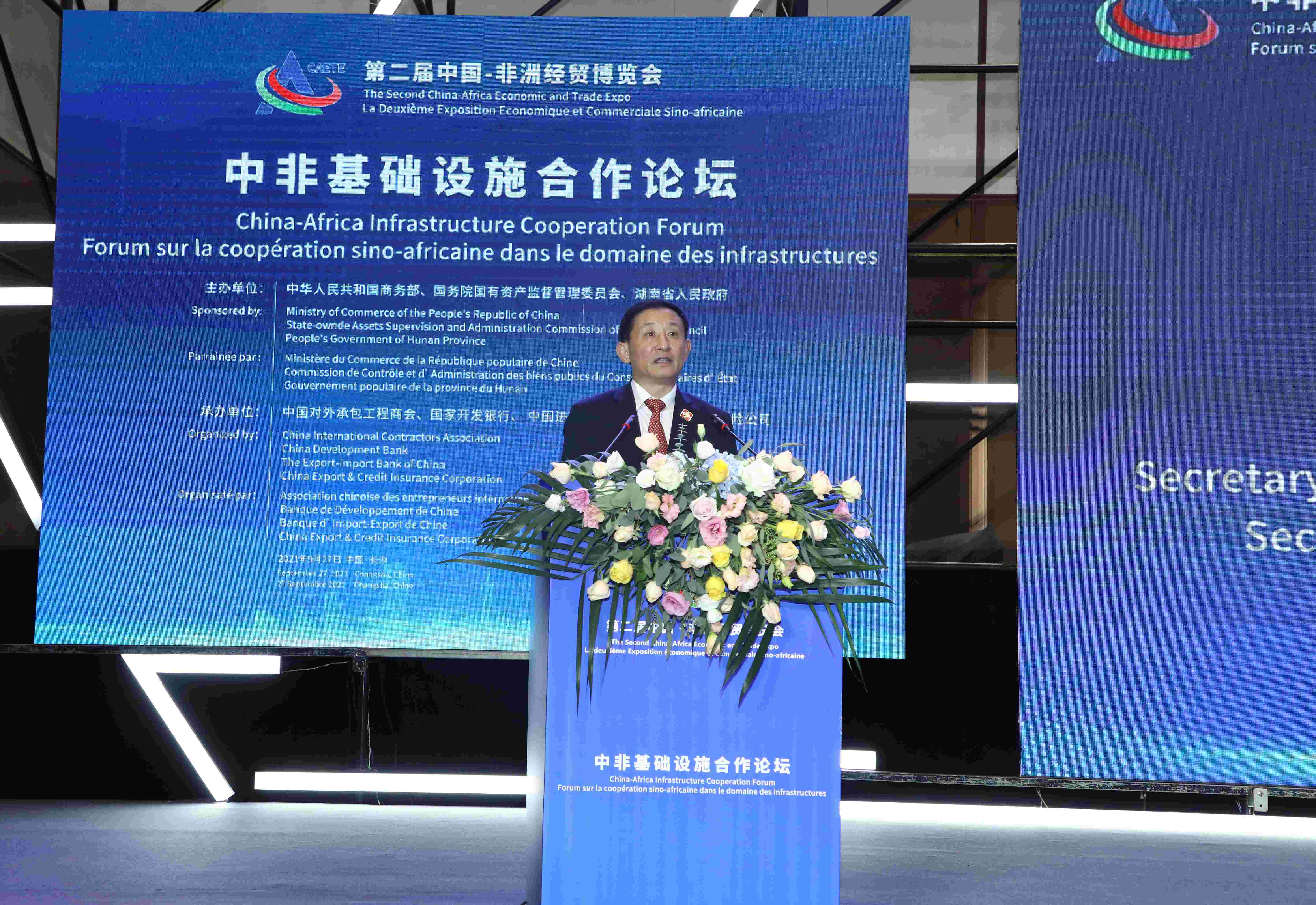 9月26日至27日,國務院國資委黨委委員、秘書長彭華崗出席第二屆中國-非洲經(jīng)貿(mào)博覽會開幕式暨中非經(jīng)貿(mào)合作論壇,并在商務部、國務院國資委、湖南省政府聯(lián)合主辦的中非基礎設施合作論壇致辭。