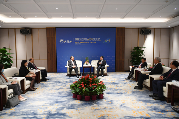 4月20日,國務(wù)院國資委黨委書記、主任郝鵬在出席博鰲亞洲論壇2021年年會期間會見了澳門特別行政區(qū)行政長官賀一誠。雙方就進(jìn)一步推動中央企業(yè)助力澳門經(jīng)濟(jì)適度多元發(fā)展,參與粵澳(橫琴)深度合作區(qū)、粵港澳大灣區(qū)建設(shè)等進(jìn)行了深入交流。外交部駐澳門特別行政區(qū)特派員公署特派員劉顯法,國務(wù)院國資委黨委委員、秘書長彭華崗參加會見。