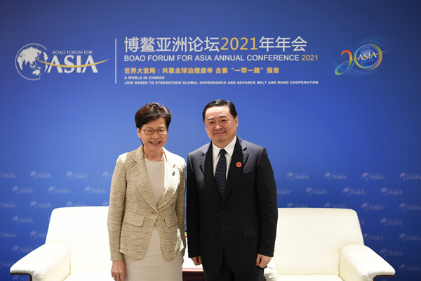 4月20日,國(guó)務(wù)院國(guó)資委黨委書記、主任郝鵬在出席博鰲亞洲論壇2021年年會(huì)期間會(huì)見了香港特別行政區(qū)行政長(zhǎng)官林鄭月娥。雙方就進(jìn)一步加強(qiáng)合作,高質(zhì)量共建“一帶一路”,推動(dòng)國(guó)資央企助力香港繼續(xù)抓好疫情防控、保持經(jīng)濟(jì)社會(huì)繁榮穩(wěn)定等進(jìn)行了深入交流。國(guó)務(wù)院國(guó)資委黨委委員、秘書長(zhǎng)彭華崗參加會(huì)見。