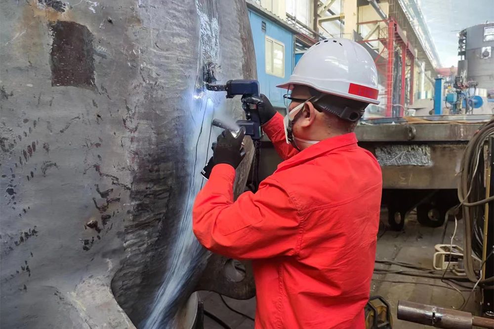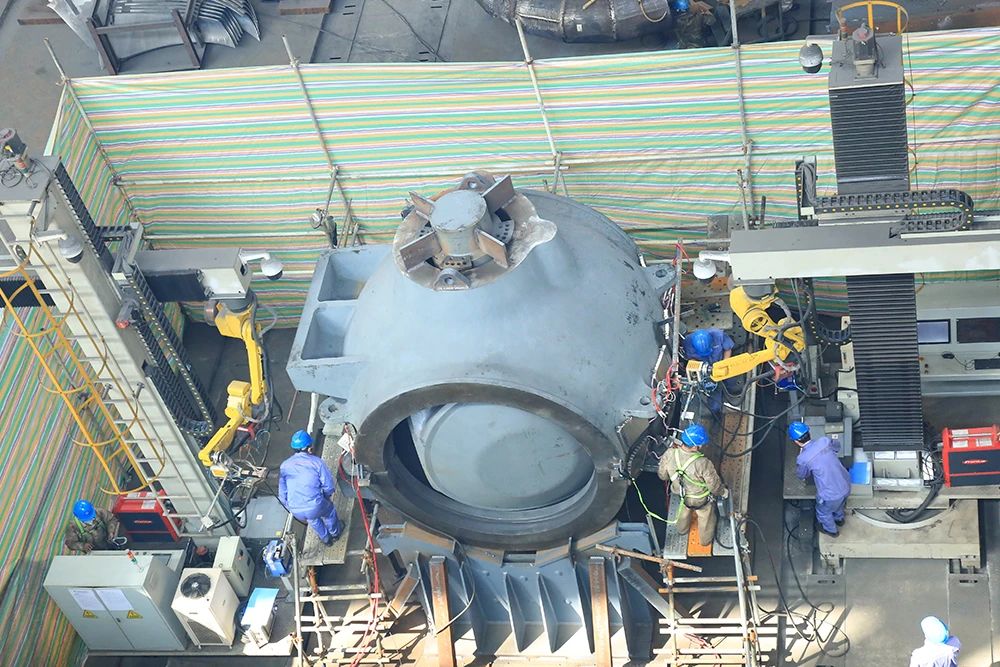 10月29日,采用雙機(jī)器人工作站全自動(dòng)化焊接的縉云抽水蓄能電站6號(hào)機(jī)球閥閥體,在焊縫焊后無損探傷一次合格的基礎(chǔ)上,退火后無損探傷再次“零缺陷”通過驗(yàn)收,實(shí)現(xiàn)了“自動(dòng)化焊接全過程零返修”的既定目標(biāo),標(biāo)志著電機(jī)公司在大型結(jié)構(gòu)件焊接自動(dòng)化生產(chǎn)領(lǐng)域取得了重大突破。