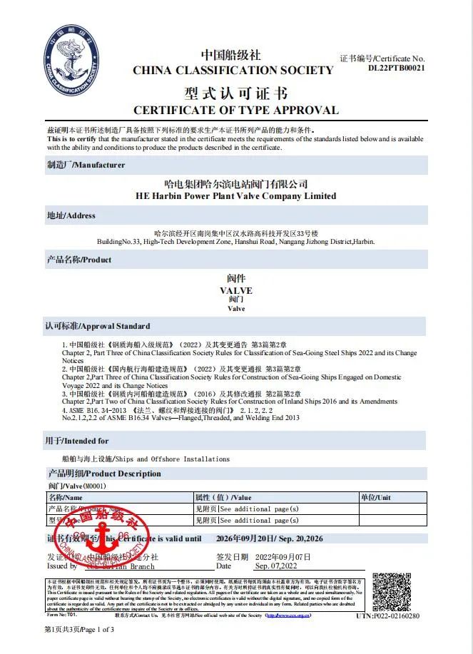 近日,哈電集團閥門公司通過中國船級社(CCS)換證現(xiàn)場審核并再次獲得中國船級社型式認可證書,這標志著閥門公司船用閥門質(zhì)量管理體系和船用閥門設(shè)計、制造能力再次獲得中國船級社認可,公司中國船級社認可證書換證成功。
