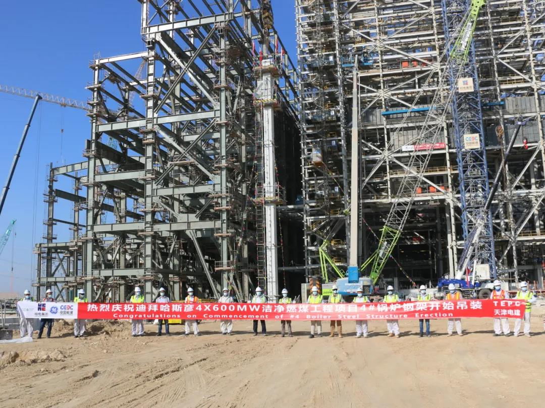 迪拜當?shù)貢r間2021年1月1日上午9時19分,哈電集團國際公司承建的迪拜哈斯彥4×600MW清潔燃煤電站項目4號鍋爐第一根鋼結構順利吊裝就位,標志著迪拜哈斯彥項目4號鍋爐安裝工作正式開始。