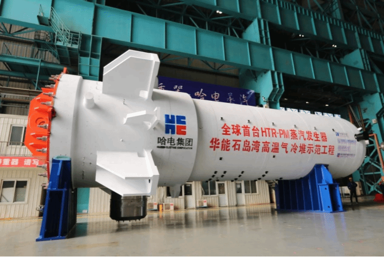 ★2023年12月6日,哈電集團參建的國家科技重大專項“全球首座第四代核電站——華能石島灣高溫氣冷堆核電站示范工程”正式投入商業(yè)運行。圖為哈電集團承制的高溫氣冷堆蒸汽發(fā)生器。