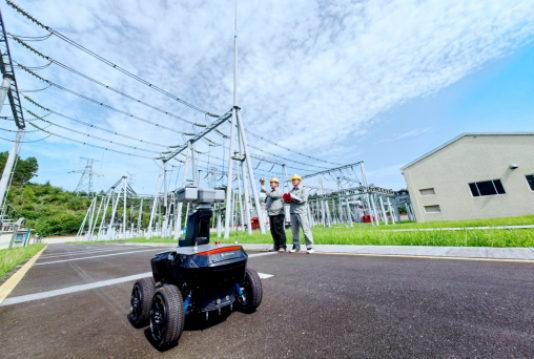 國網(wǎng)湖北電力員工運用智能巡檢機器人在十堰市茅箭區(qū)220千伏龍虎溝變電站進行設(shè)備巡視。