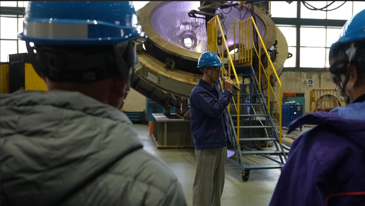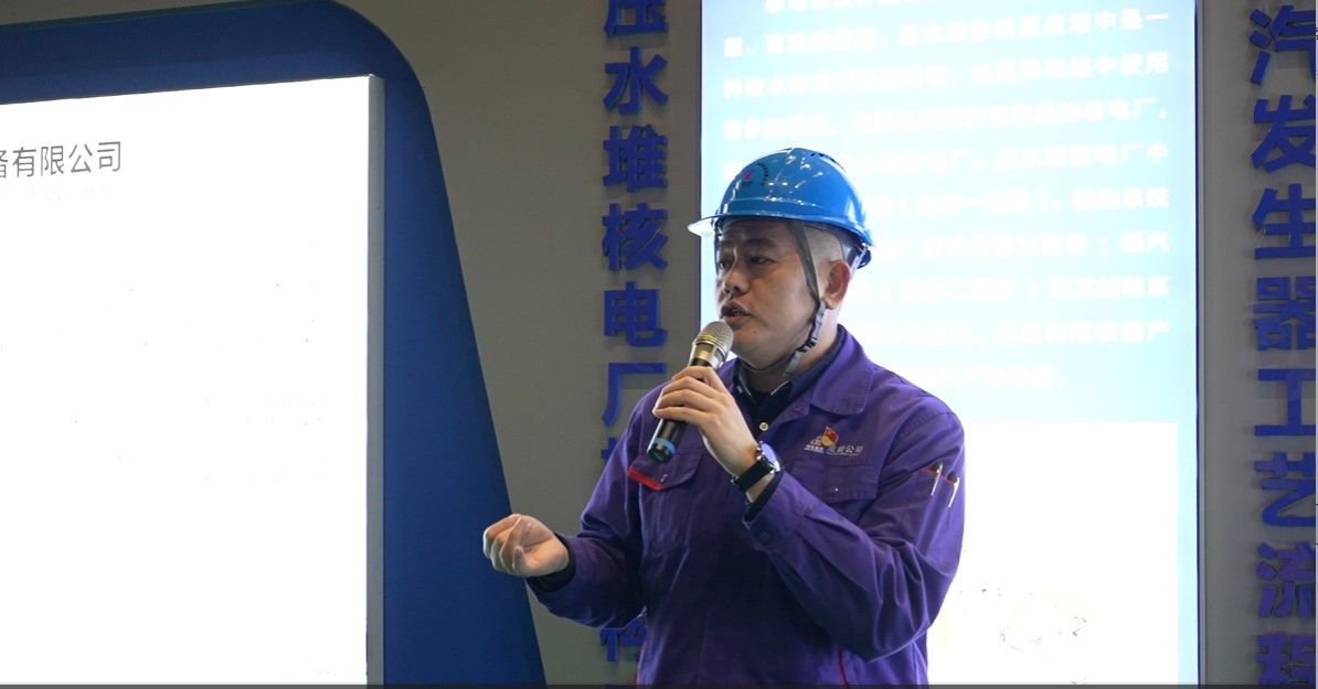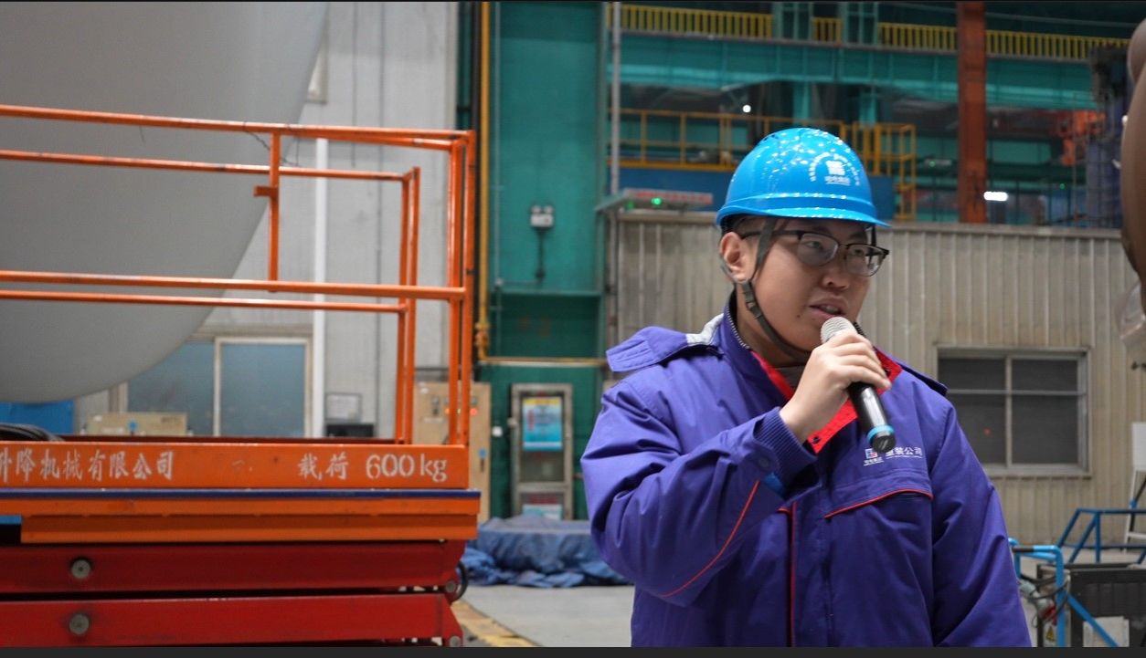 現(xiàn)場參觀時,丁道復(fù)介紹了公司歷史和典型產(chǎn)品,生產(chǎn)制造部團總支第一支部書記高靖博介紹了焊接設(shè)備和焊接后的檢驗處理工作,生產(chǎn)制造部團總支機加團支部書記劉方舟介紹了機加設(shè)備和加工產(chǎn)品,項目聯(lián)合團支部書記韓兆明介紹了三門4號蒸汽發(fā)生器的特點和功能。