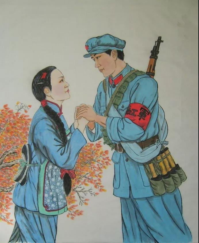 十送紅軍,滿腹酸楚。夫妻一別,不知來(lái)日。這位愛(ài)唱山歌的村婦,甜美的歌聲漸漸變低沉了,她一直信守著男人那句低低的“等我回來(lái)”的約定。戰(zhàn)斗不斷,傷亡不止,一天兩天,沒(méi)有蹤影,十天半月,沒(méi)有音訊,女人的心在煎熬,在等待;紅軍走了,白軍來(lái)了,把紅軍家屬的她打得皮開(kāi)肉綻、死去活來(lái),她在等;勝利了,解放了,同村的戰(zhàn)友玩伴回來(lái)了,男人還是音訊杳無(wú),她在等;組織上派人捎來(lái)話,說(shuō)她的男人在長(zhǎng)征途中犧牲了,她依然在等。她執(zhí)拗地相信,她的紅軍男人沒(méi)有死,會(huì)忽然回家來(lái)找她,怕男人找不到家門(mén),女人幾乎天天向男人離家的路口眺望。從青絲明眸到白發(fā)老眼,直到望穿雙眼,兩目失明,她還在等;一聽(tīng)說(shuō)村里來(lái)了客人,她都要湊上去,把她男人的名字說(shuō)一遍,把心里久積的思念說(shuō)一遍,把重復(fù)了不知道多少次的請(qǐng)求,再說(shuō)一遍。從小女子到老女人,她不但在等,還一面埋怨、數(shù)落、嗔怪,一面想著男人那雙笨腳的模樣,編織草鞋,等他回來(lái)試腳……