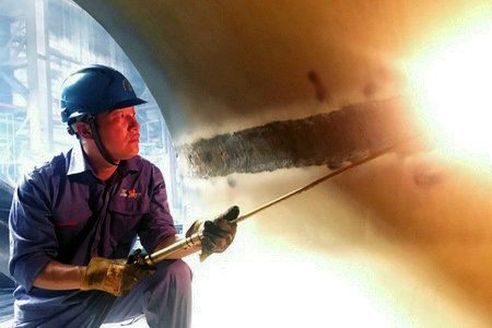 2018年,電機公司冷作分廠生產(chǎn)任務量再創(chuàng)新高,白鶴灘、兩河口、豐寧、敦化等水電項目產(chǎn)品的生產(chǎn)周期一縮再縮,三工段承擔了其中大部分重點項目的攻關(guān)任務,而這些任務中關(guān)鍵的鉚裝作業(yè),都是由陶捍崢所帶領(lǐng)的鉚工班完成的。鉚工班僅有10名裝配人員,卻要滿足四個焊接班組和大量外聘焊工的滿負荷焊接作業(yè)工件鉚接需求。7月份,敦化第二臺座環(huán)蝸殼工期異常緊張。為保證蝸殼以最短的時間裝配完成,陶捍崢組織班組人員三班倒進行裝配作業(yè),創(chuàng)下了普通瓣蝸殼、蝶形邊掛裝僅用兩天完成的歷史紀錄,他自己更是連續(xù)工作30多個小時,最終蝸殼鉚裝達到了一次交檢合格,為后序贏得了寶貴的時間。