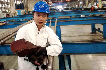 奧氏體不銹鋼具有較高的韌性、可塑性和抗氧化性,有焊接難度大、焊接過程中熱裂傾向等問題,給實際生產制造帶來很大的挑戰(zhàn)。特別是三叉結構的三通焊接難度更大,極易出現(xiàn)裂紋、內咬、焊瘤過大等缺陷,返修十分困難,造成管材報廢,增加生產成本,影響生產進度。為解決三叉管焊接難題,鍋爐公司管子二分廠手氬組組長黨員呂新章帶領攻關團隊,圍繞實際生產中出現(xiàn)的問題,一次又一次地反復試驗,不斷改進焊接規(guī)范、參數(shù)和焊接操作手法,成功歸納總結出一套行之有效的三叉管焊接操作流程,使此類產品的缺陷率得到了有效控制,產品合格率從80%左右提高到98%以上,為優(yōu)質、高效兌現(xiàn)合同作出貢獻。