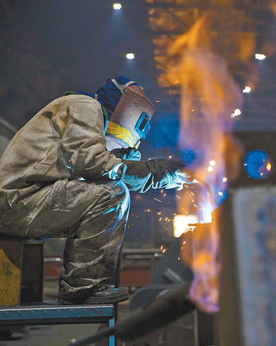 3月23日,黑龍江省哈爾濱市,工人在哈電集團(tuán)電機(jī)公司生產(chǎn)車(chē)間內(nèi)進(jìn)行焊接作業(yè)。在做好疫情防控的前提下,哈爾濱市規(guī)上企業(yè)堅(jiān)持防疫、生產(chǎn)“兩不誤”,保質(zhì)保量完成訂單,力爭(zhēng)最大限度減少疫情對(duì)經(jīng)濟(jì)社會(huì)發(fā)展的影響。