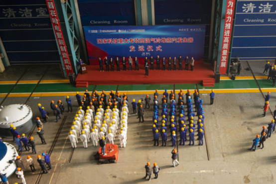 在全球首臺高溫氣冷堆蒸汽發(fā)生器驗收會上,驗收組一致認為:蒸汽發(fā)生器及本體附件的數(shù)量、主要尺寸、外觀質(zhì)量和相關(guān)質(zhì)量證明文件均滿足采購合同和設(shè)計文件要求。設(shè)備合格,同意出廠。