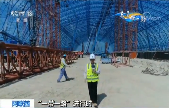 央視記者 李大杰:我身后在建的就是哈斯彥清潔燃煤電站項目一號儲煤場,大家千萬不要小看這座儲煤場,因為它正在創(chuàng)造一項不大不小的世界紀錄。在它建成之后,它將成為世界上同類電站當中,單體面積最大的儲煤場。面積有多大呢?給大家兩組數(shù)據(jù):第一就是它的面積是在83000平方米左右,這個面積相當于12座標準足球場的面積;第二它整個的用鋼量是在8100噸左右,這相當于一座巴黎的埃菲爾鐵塔。